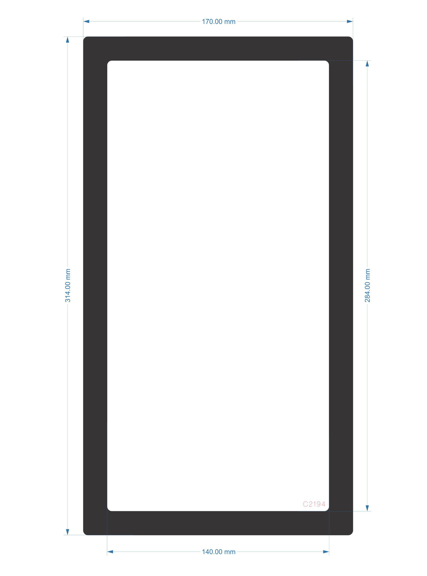 O/D 170mm x 314mm I/D 140mm x 284mm