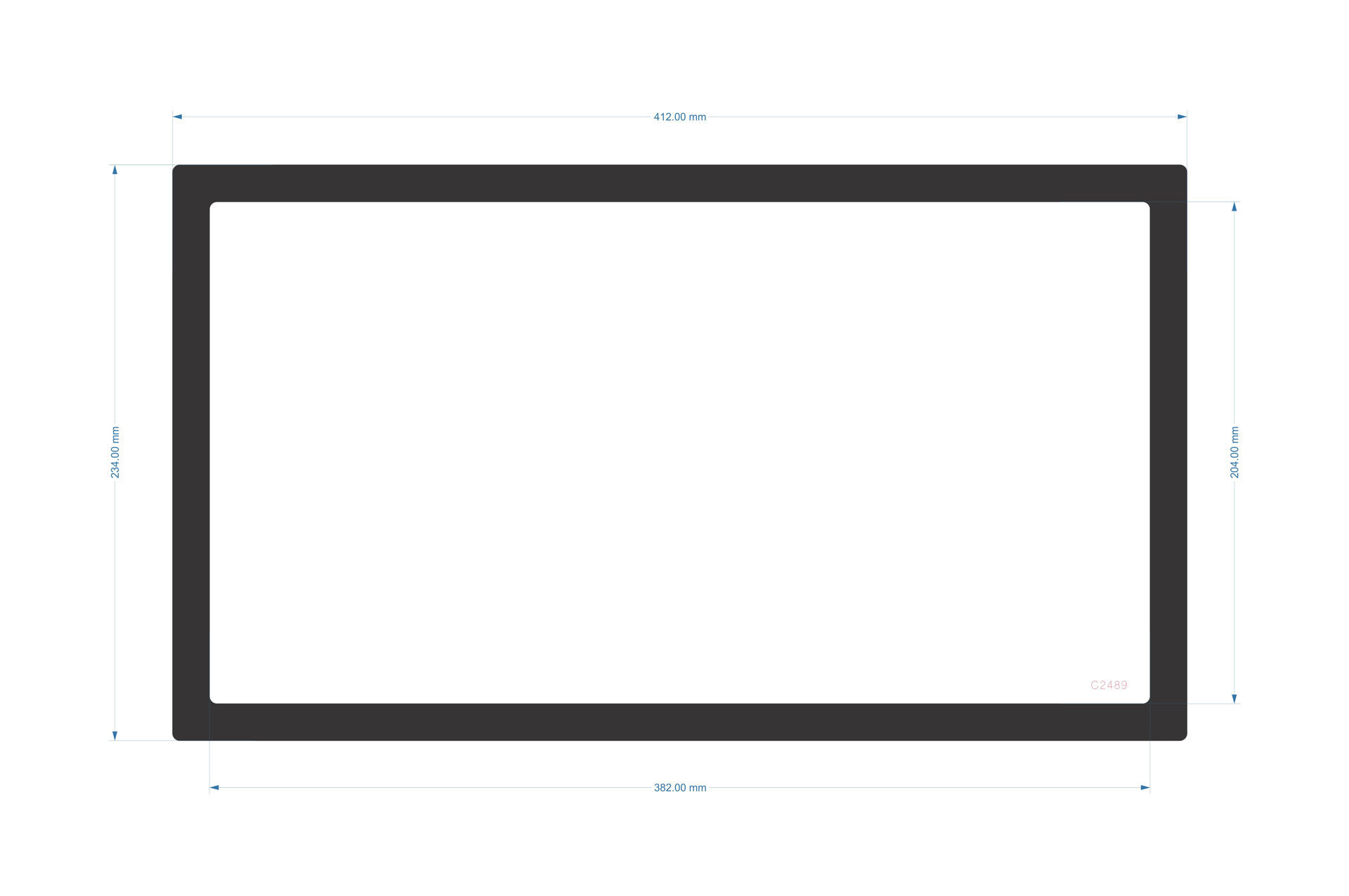O/D 412mm x 234mm I/D 382mm x 204mm