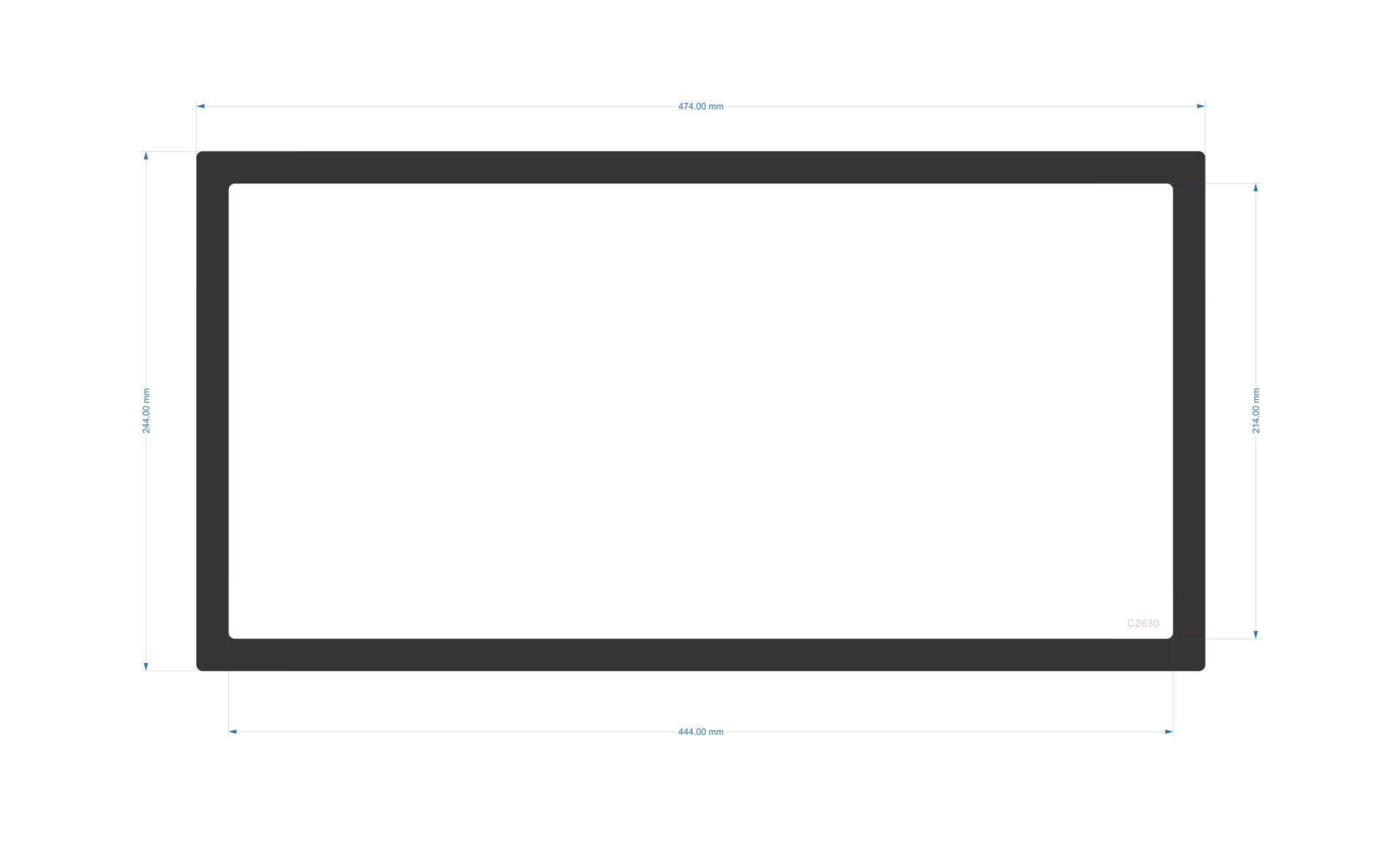 O/D 474mm x 244mm I/D 444mm x 214mm