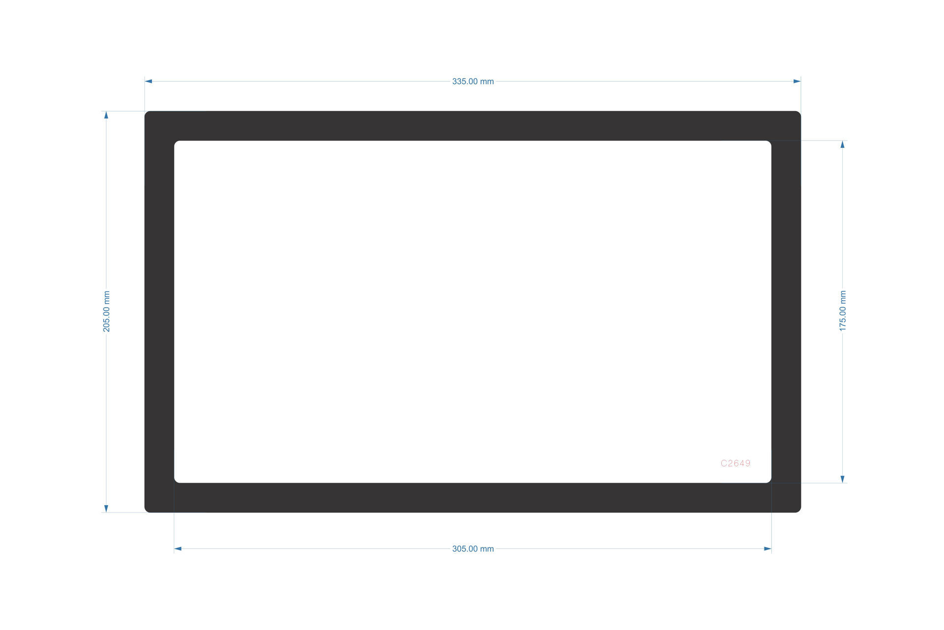 O/D 335mm x 205mm I/D 305mm x 175mm