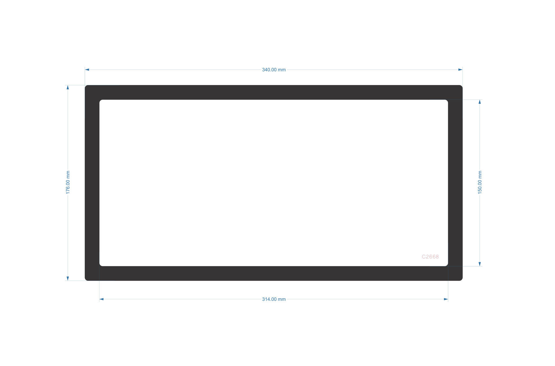 O/D 340mm x 176mm I/D 314mm x 150mm
