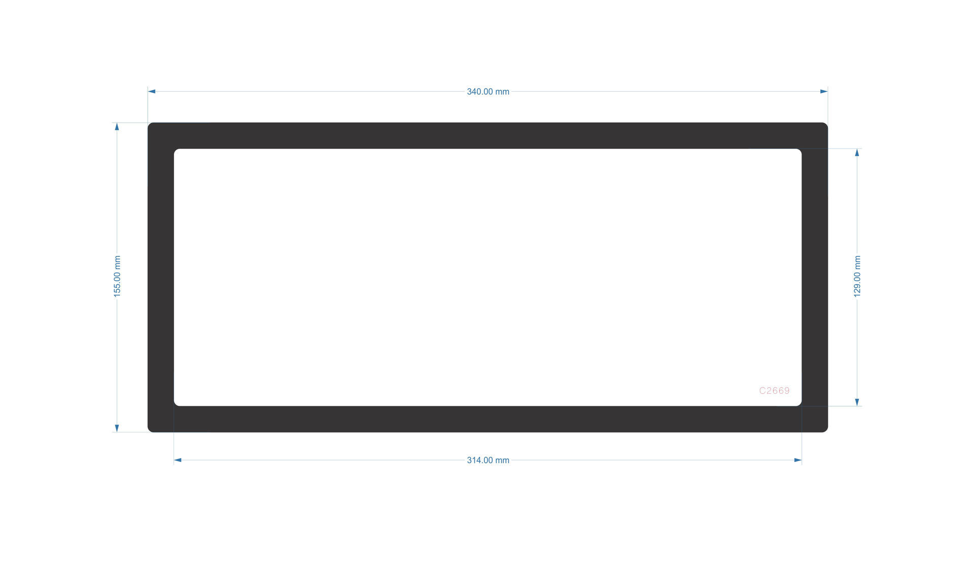 O/D 340mm x 155mm I/D 314mm x 129mm