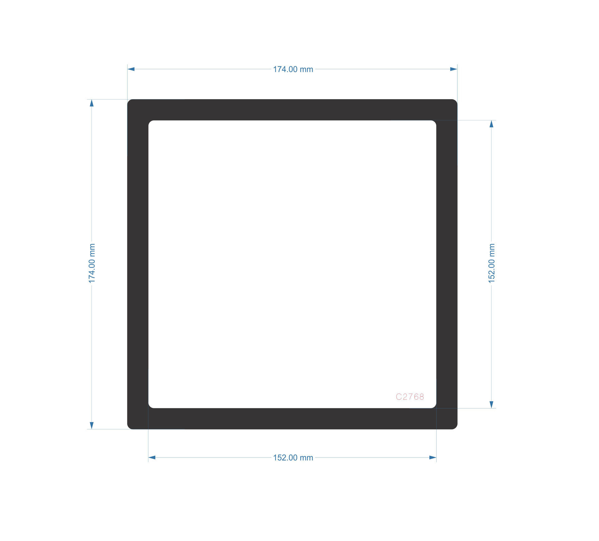 O/D 174mm x 174mmI/D 152mm x 152mm