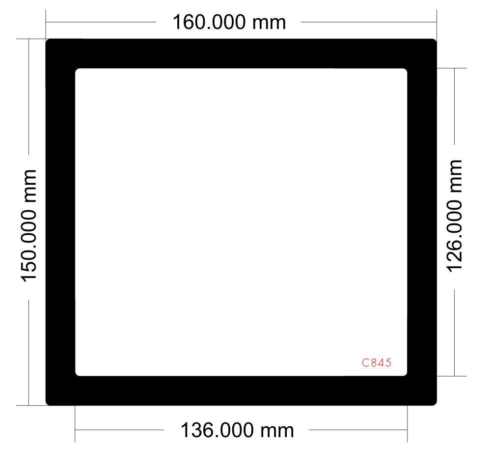 Size: O/D 160mm x 150mm I/D 136mm x 126mm Height: < 2.5mm thick for ferrous filters (without the non-ferrous magnet) < 3mm with the non-ferrous magnet included This filter includes the peel and stick magnetic frame for non-ferrous applications.